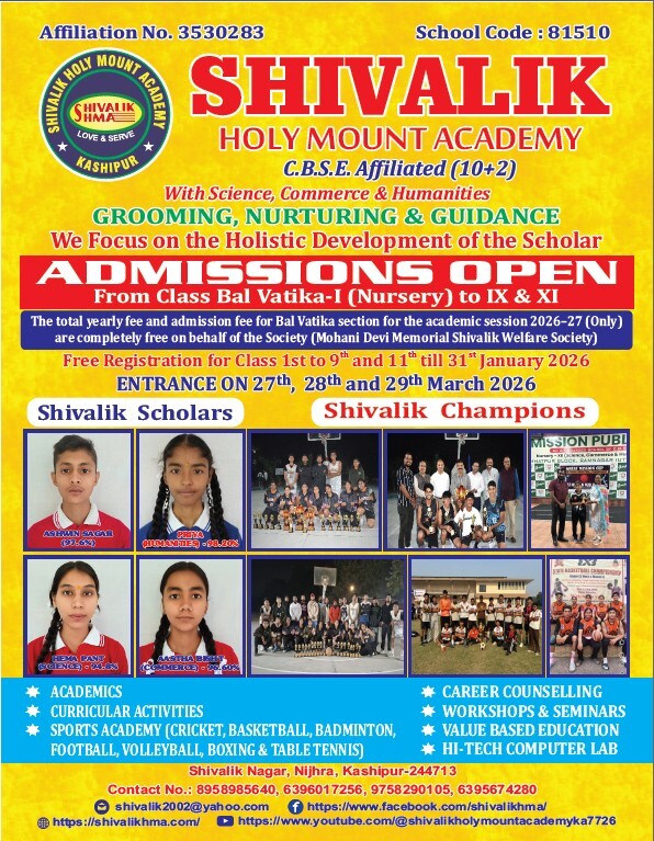 ENTRANCE EXAM FOR THE SESSION 2026-27 ON 27,28 AND 29 MARCH 2026