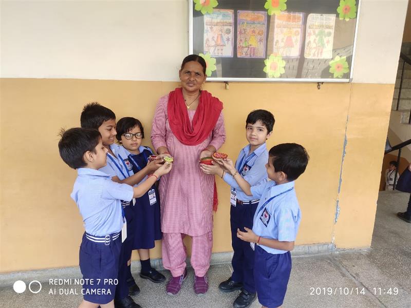 Candle / Diya decoration and Bookmark making activity for students of classes 1 and 2 was organised on 14.10.19. Students gifted the candles and diyas to class 4 employees and bookmarks to their teachers.