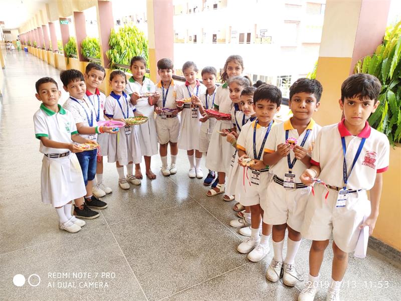 To celebrate the bond of love between brothers and sisters , a Rakhi making and thali decoration activity was held on 13.8.19 for classes 1 and 2