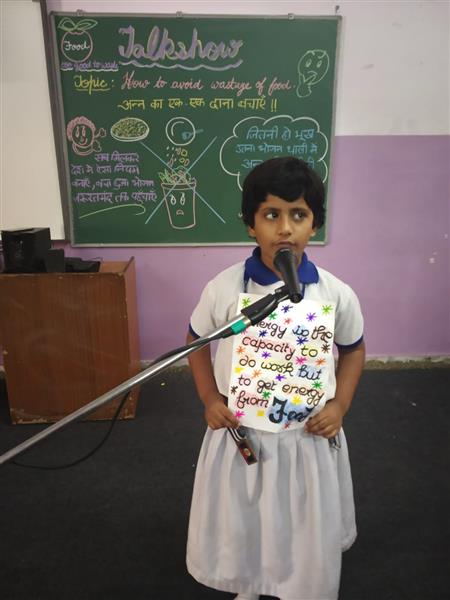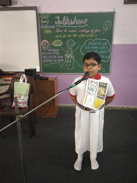 Students of class 2 put forward their ideas on how to avoid wastage of food . Mrs. Kanika Bedi , our special guest , shared her views too. She taught the students about the value of food through 2 videos and an activity.